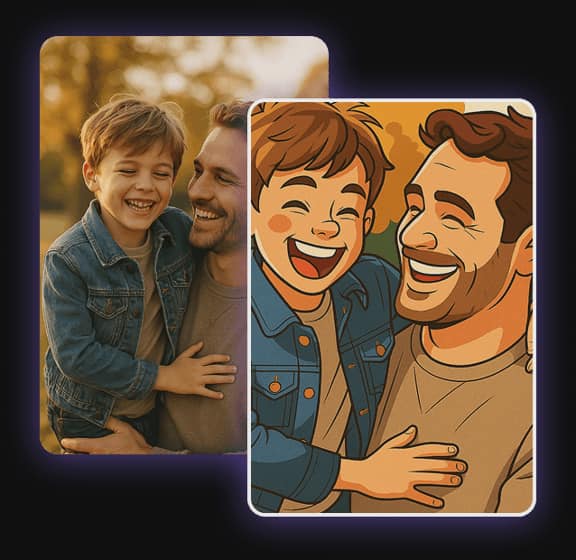 Every portrait is hand-drawn by our artists and turned into a unique cartoon version you’ll love to hang on your wall.